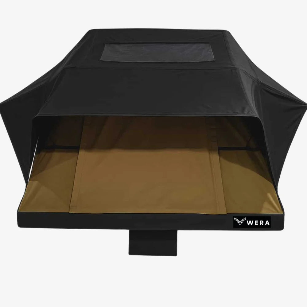 Tältet fälls upp på cirka 90 sekunder, har ventilerande tyg, högdensitetsmadrass och bjuder på samma premiumkomfort som vår mindre modell – men med en tydlig bonus: